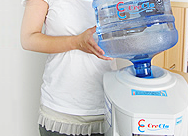 クリクラボトルは、取手もついているので、女性でも簡単に交換できます。形状も保管しやすく、ペットボトルのように転倒の恐れもありません。